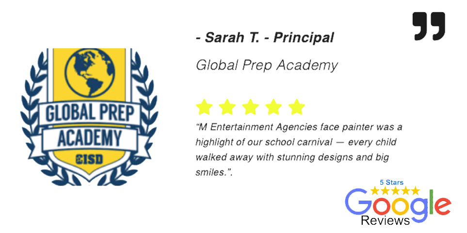 “We’ve worked with M Entertainment Services’ face painter, Tiphanny, for years at Park Tudor School, and she continues to be one of our most requested vendors. We bring her in three times a year for our summer camp, homecoming, and parent night events because she always delivers exceptional work. The students and parents absolutely love her—not only for her creative and vibrant designs, but also for her incredible patience and care with each child. Tiphanny takes the time to make every face special, and that personal touch is why we keep inviting her back year after year.”